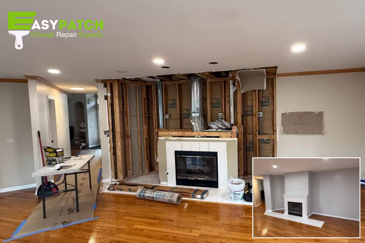 Explore real jobs completed by EasyPatch Drywall Repair Experts—holes, cracks, water damage, and ceiling repairs finished with seamless texture matching and paint-ready results.